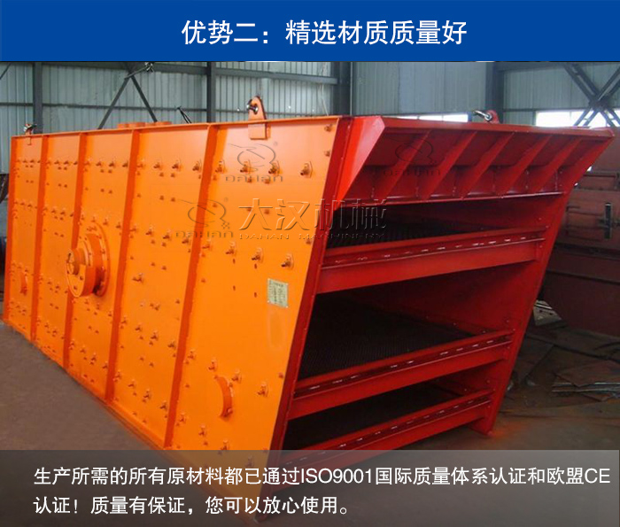 大漢機(jī)械生產(chǎn)的圓振動(dòng)篩在選材是上精益求精,精選的優(yōu)質(zhì)不銹鋼和碳鋼兩種材質(zhì)供您選擇,我們保證每次選用的原材料都是進(jìn)行質(zhì)量檢測合格之后才加工使用,生產(chǎn)所需的所有原材料都已通過ISO9001國際質(zhì)量體系認(rèn)證和歐盟CE認(rèn)證!質(zhì)量有保證,您可以放心使用。