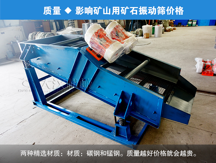 大漢機械生產(chǎn)的礦山用礦石振動篩應(yīng)用廣泛,不同的型號、質(zhì)量、廠家的礦用振動篩價格都不一樣,那么影響礦山用礦石礦用振動篩的價格因素有哪些呢?