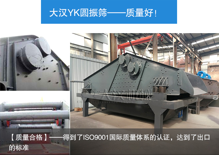 【質(zhì)量合格】——產(chǎn)品終都要回到使用這個(gè)因素上,所以只有質(zhì)量合格才能讓生產(chǎn)進(jìn)行下去。大漢機(jī)械的YK圓振篩是嚴(yán)格按照國(guó)家生產(chǎn)標(biāo)準(zhǔn)生產(chǎn)的,經(jīng)久耐用,廣受好評(píng),并且得到了ISO9001國(guó)際質(zhì)量體系的認(rèn)證,達(dá)到了出口的標(biāo)準(zhǔn)。