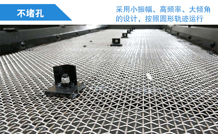 圓振動(dòng)篩采用小振幅、高頻率、大傾角的設(shè)計(jì),按照?qǐng)A形軌跡運(yùn)行,篩面上的礦石不斷翻轉(zhuǎn)和松散著向前前行,小顆粒的鐵礦石有更多機(jī)會(huì)透過(guò)物料層并完成篩分,同時(shí)圓形軌跡還可使卡在篩孔中的物料跳躍出來(lái),避免了篩孔堵塞,提升了整臺(tái)設(shè)備的篩分效率。