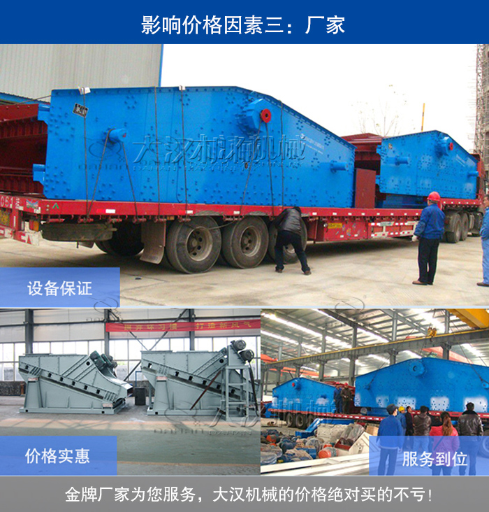 大漢機(jī)械生產(chǎn)的石英礦生產(chǎn)線礦用振動篩應(yīng)用廣泛,不同的型號、質(zhì)量、廠家的石英礦生產(chǎn)線礦用振動篩價格都不一樣,那么影響石英礦生產(chǎn)線礦用振動篩的價格因素有哪些?